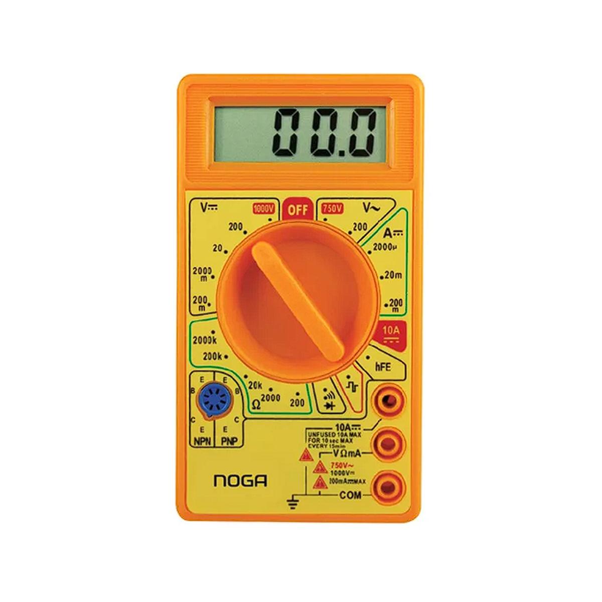 Tester digital preciso para medir tensiones continuas de 200mV a 1000V y alternas de 200V a 750V. Permite medir corrientes de 200mA a 10A, resistencias hasta 2000KΩ, prueba transistores y diodos, incluye inyección de señal y buzzer. Funciona con batería de 9V (no incluida).