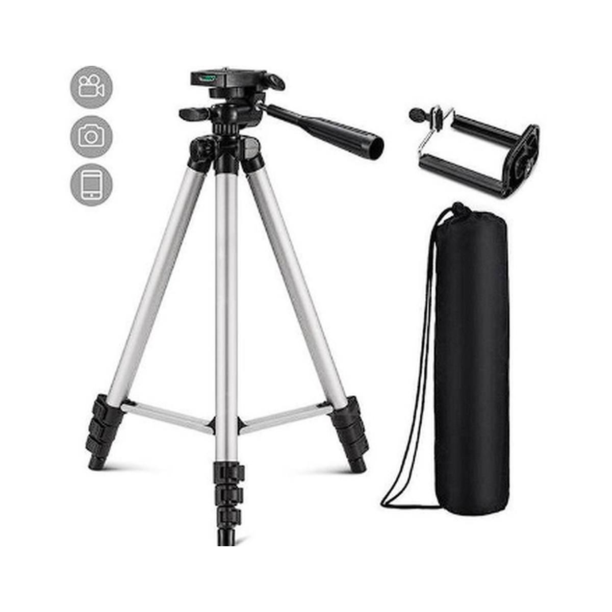 Versátil y liviano, ideal para fotos y videos con ángulo ajustable. Compatible con cámaras y celulares, viene con funda y cabezal.