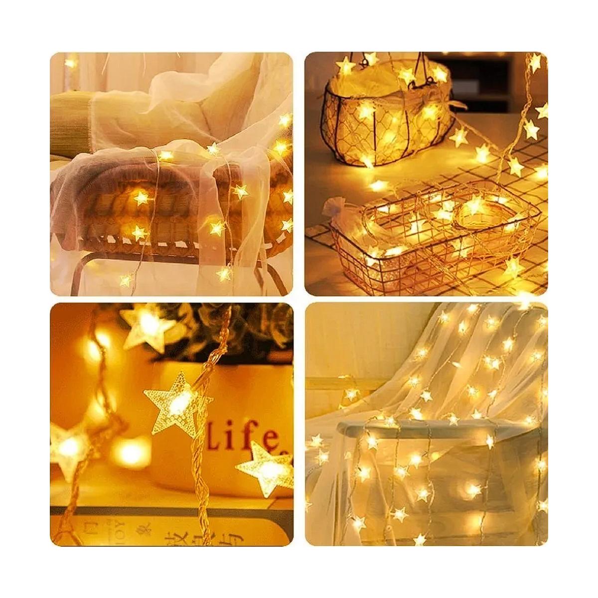 Iluminá tus espacios con 5 metros de luz cálida, 28 estrellas de 3 cm y cable transparente para un acabado prolijo. Enchufe 220V, ideal para interiores: deco diaria, fiestas o vidrieras. Sumale ambiente al instante.